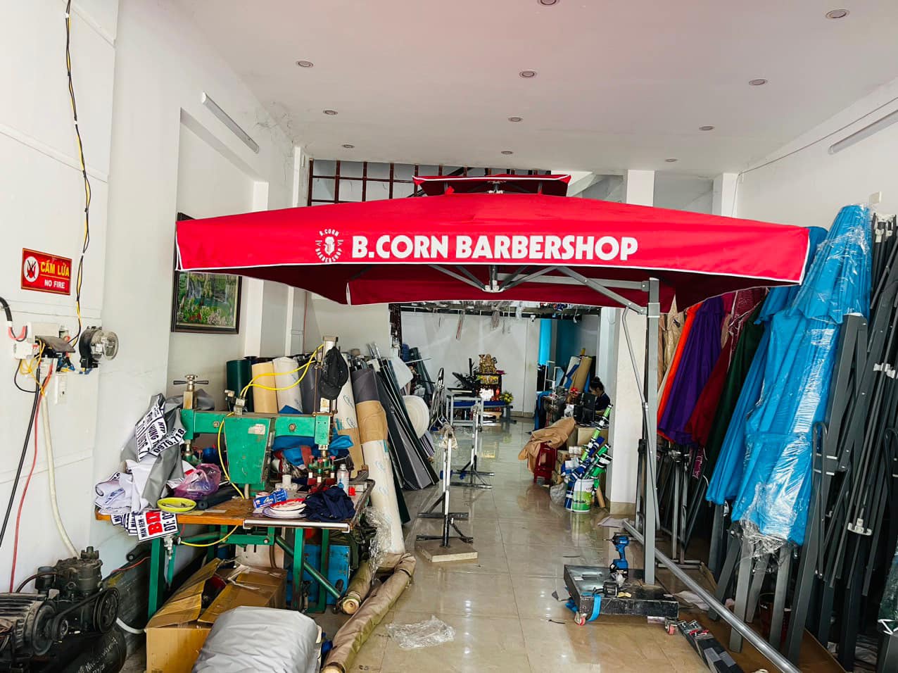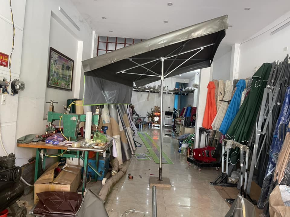 • Gian hàng, quầy trưng bày: Dù che bảo vệ sản phẩm, trang thiết bị và nhân viên khỏi nắng mưa, tạo không gian chuyên nghiệp.