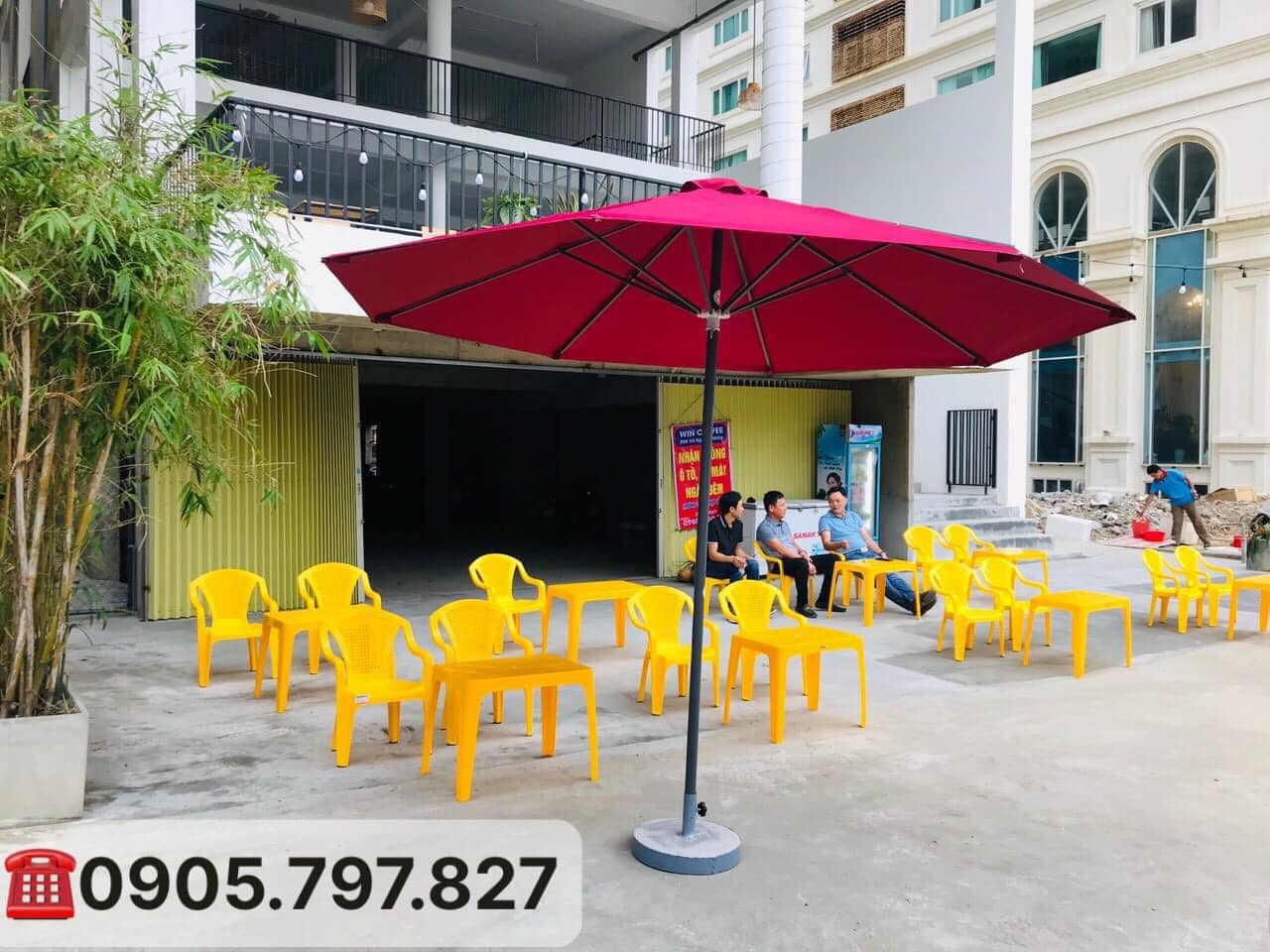 - Đặc biệt với các quán café, nhà hàng, resort hay khu sự kiện ngoài trời. Dù che là vật dụng nổi bật, dễ nhìn thấy từ xa.