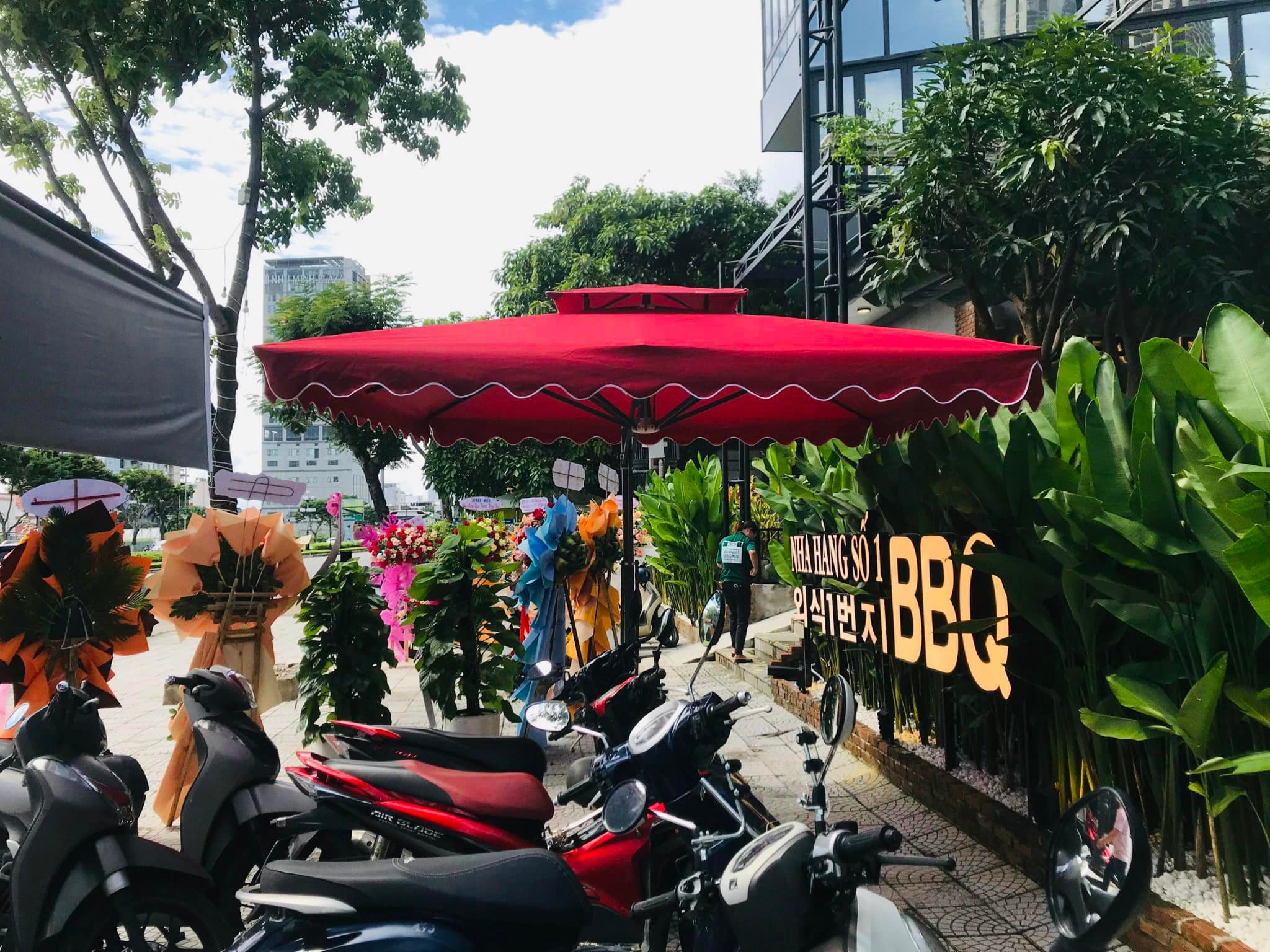 - Giúp vừa che nắng mưa, vừa tạo điểm nhấn. Đồng thời là công cụ quảng bá thương hiệu hiệu quả.