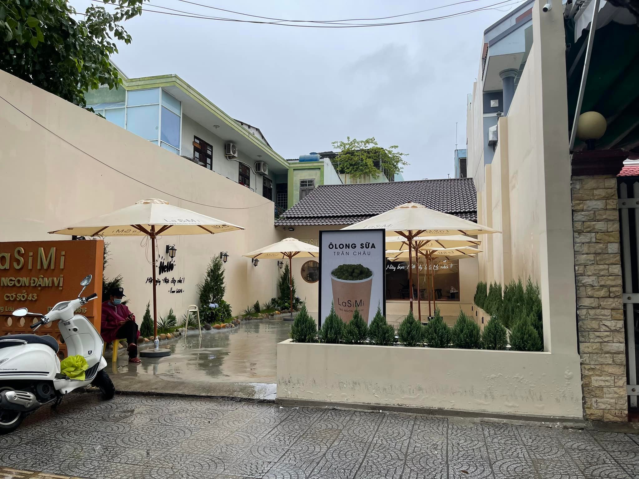 Dù che quán cà phê