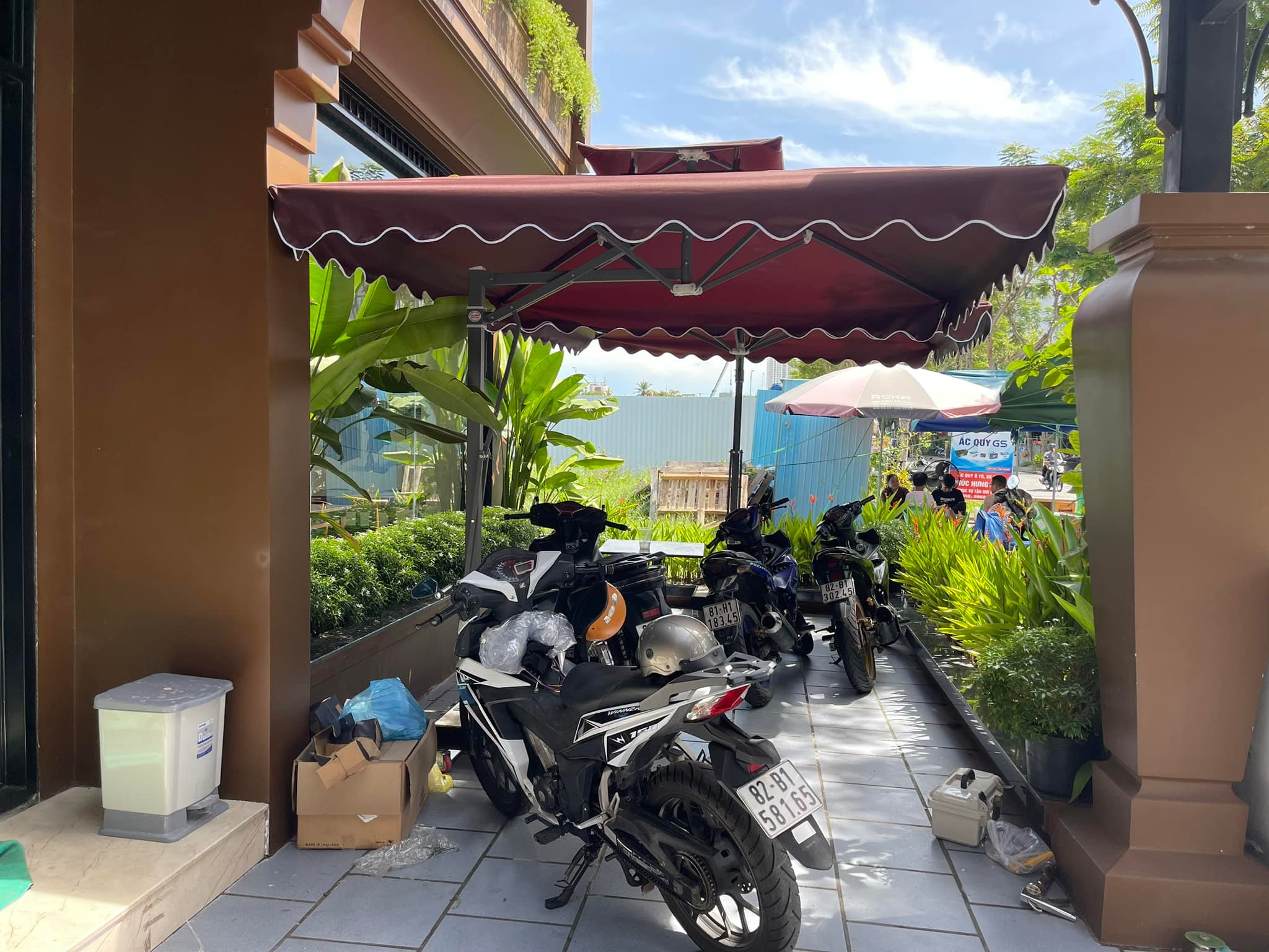 - Che diện tích rộng, thích hợp cho quán ăn, quán café ngoài trời hoặc sân vườn lớn.