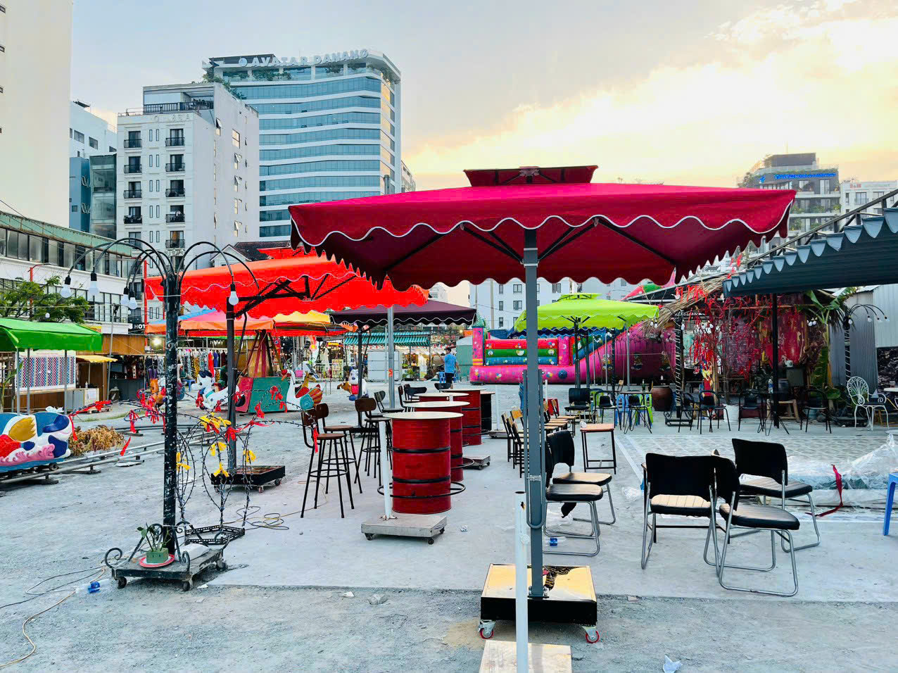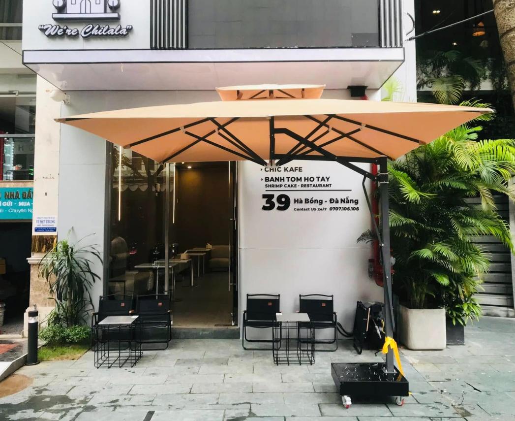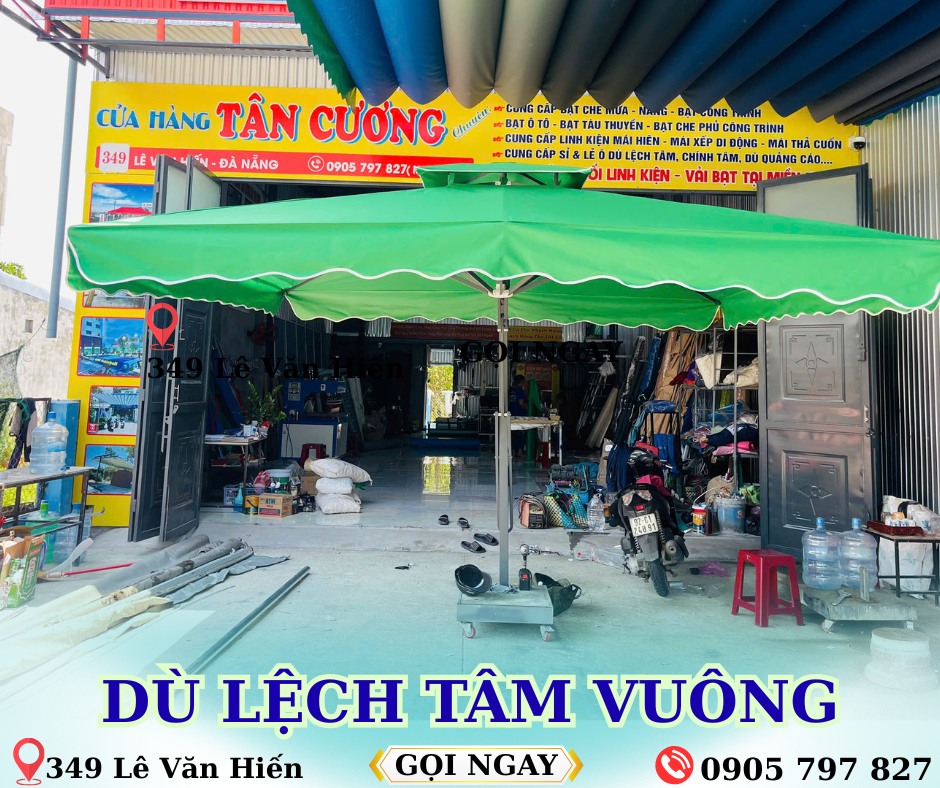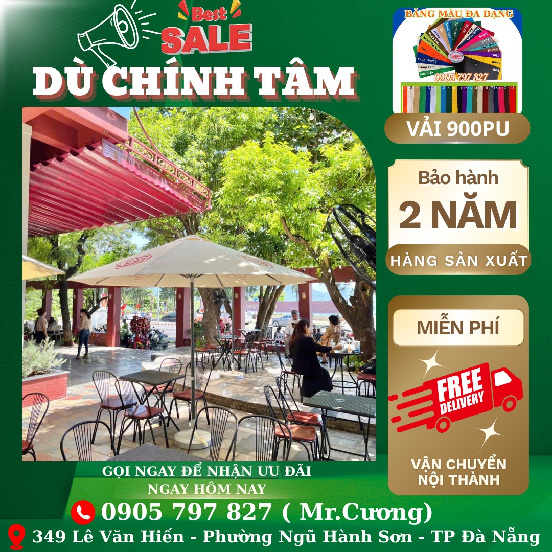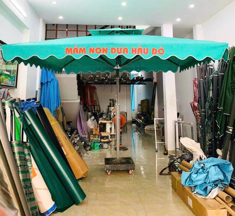 - Đặc điểm: Có thể là dù chính tâm hoặc dù lệch tâm, nhưng được sản xuất với kích thước và chất liệu phù hợp với môi trường kinh doanh. Thường có in logo hoặc tên quán trên tán dù để quảng bá.