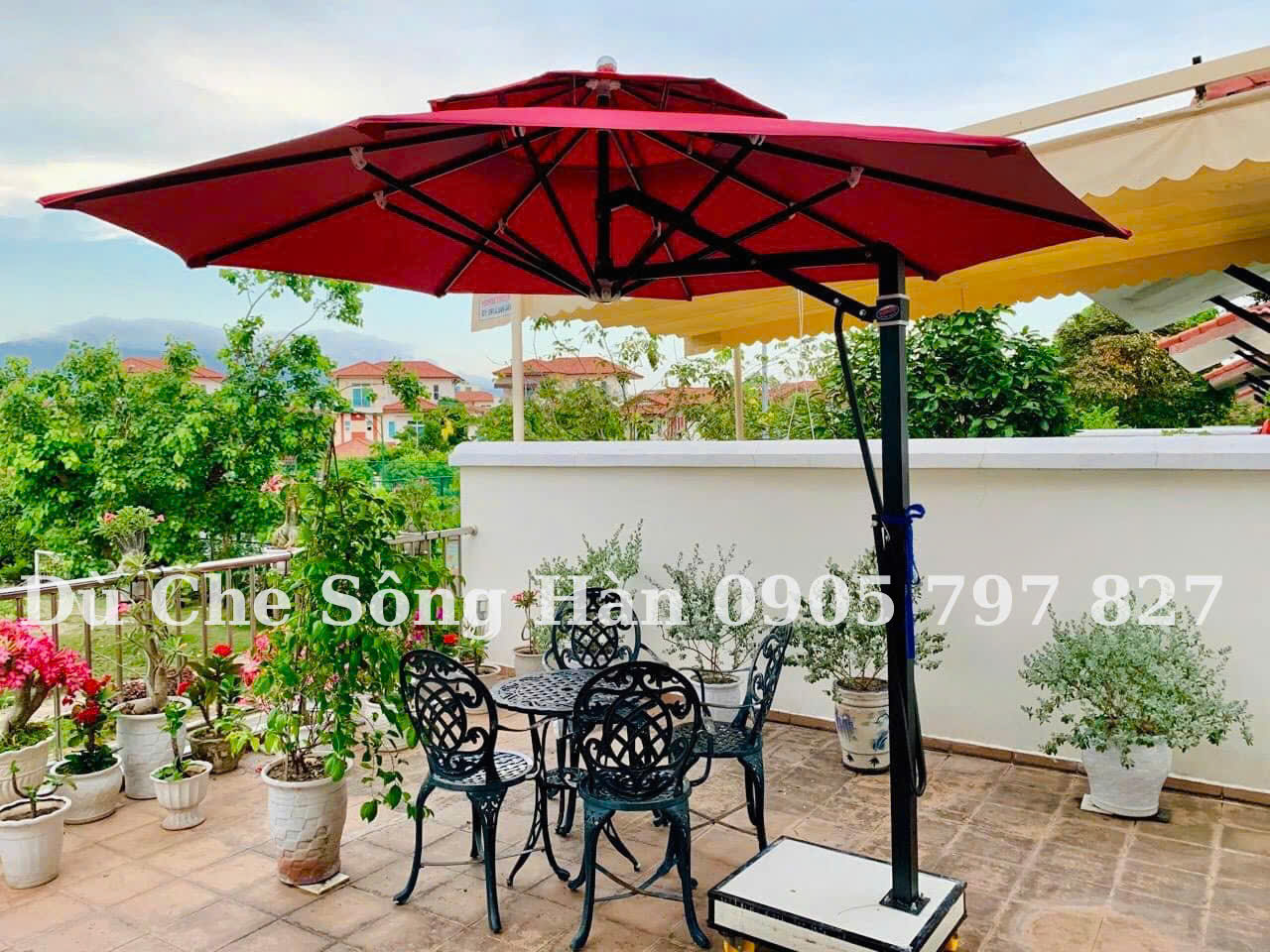 - Tiện nghi: Dù che có khả năng xoay 360°, nghiêng nhiều góc, dễ mở – gấp, phù hợp với nhiều điều kiện thời tiết.