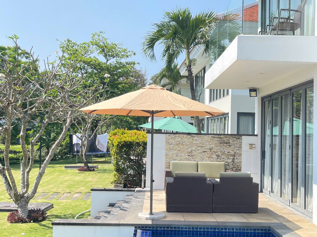 - Ưu điểm: Tận dụng được toàn bộ diện tích che phủ, không bị vướng trụ dù ở giữa. Mang lại vẻ đẹp hiện đại, sang trọng cho không gian.