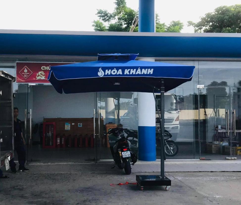 - Quảng Bá Thương Hiệu: Dù che có thể in logo, tên quán hoặc các thông điệp quảng cáo, biến chúng thành một công cụ marketing hiệu quả. Giúp khách hàng dễ dàng nhận diện thương hiệu từ xa.